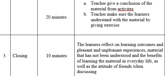 At the end of fthe lesson, the learners at least 75% are expected to